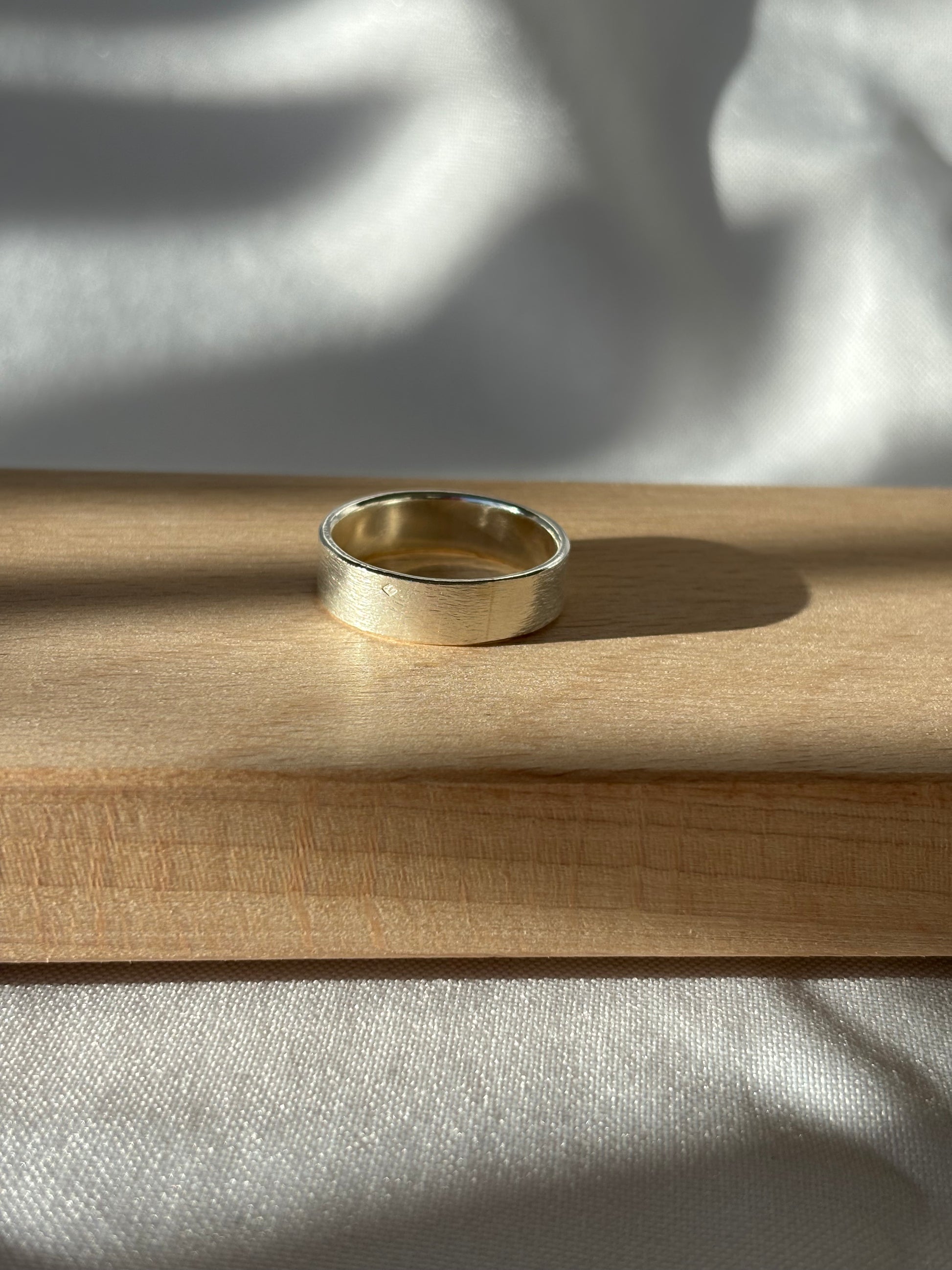 Avec sa bande large et son fini mat brossé texturé, l’anneau Ata impose un style minimaliste et brut. Elle ne cherche pas à briller par des artifices, mais par la force de sa ligne et sa texture unique. C’est le modèle universel par excellence : pensé pour tous, il convient particulièrement bien aux mains masculines.